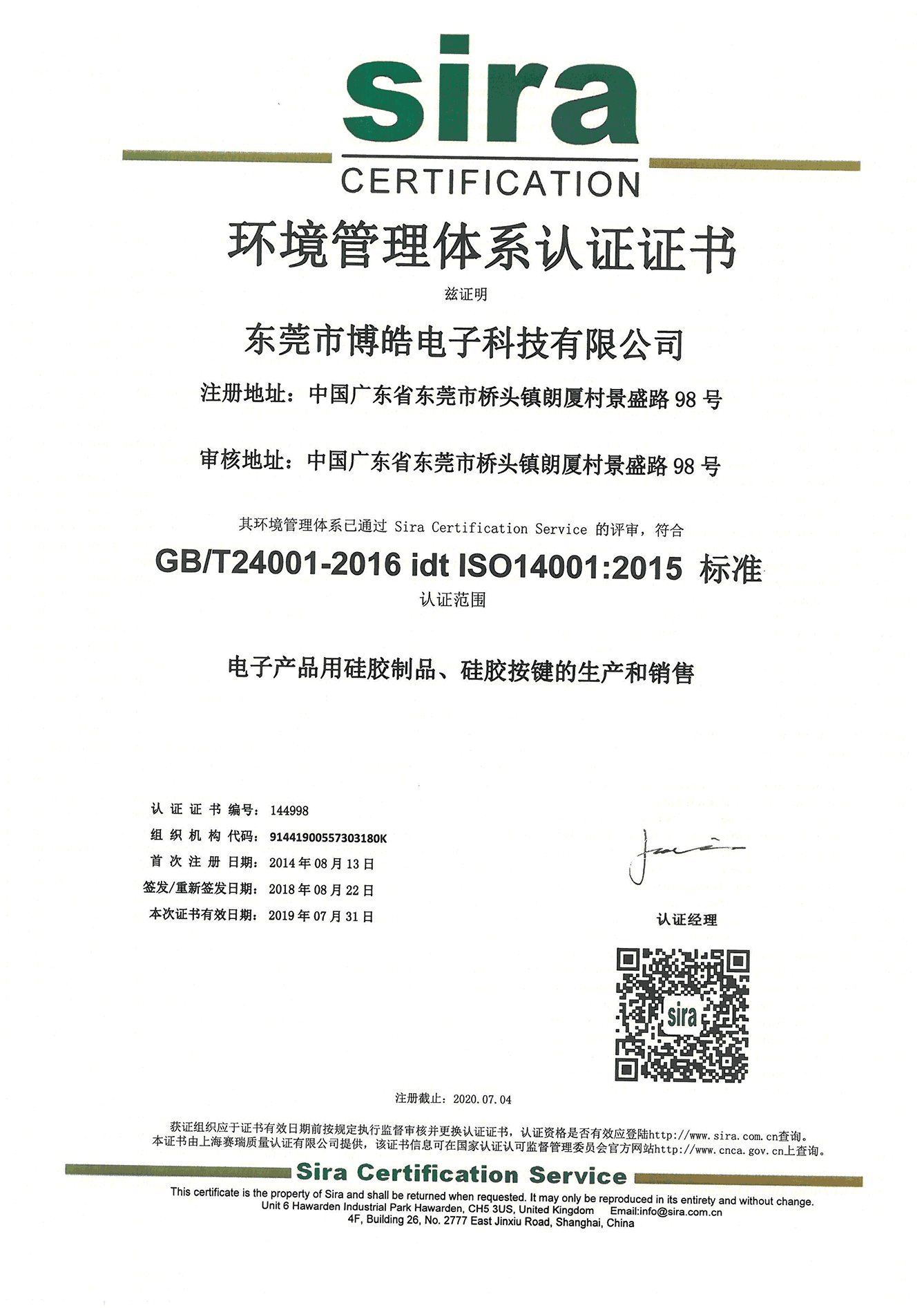 ISO14001:2015環(huán)境管理體系認證中文證書