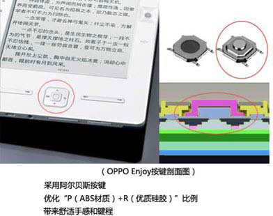翻頁鍵要考慮拇指指腹大小以及表面弧度。OPPOEnjoy的翻頁鍵是一個類似波浪的設(shè)計,保證指腹是在一個曲率半徑較大的弧線上進行操作,非常接近自然狀態(tài)。這樣的設(shè)計的好處,可以在不增加鍵帽的視覺高度基礎(chǔ)上,增加鍵程,緩解按鍵過多的疲憊感,關(guān)于鍵程增加帶來的益處在手感篇詳談。