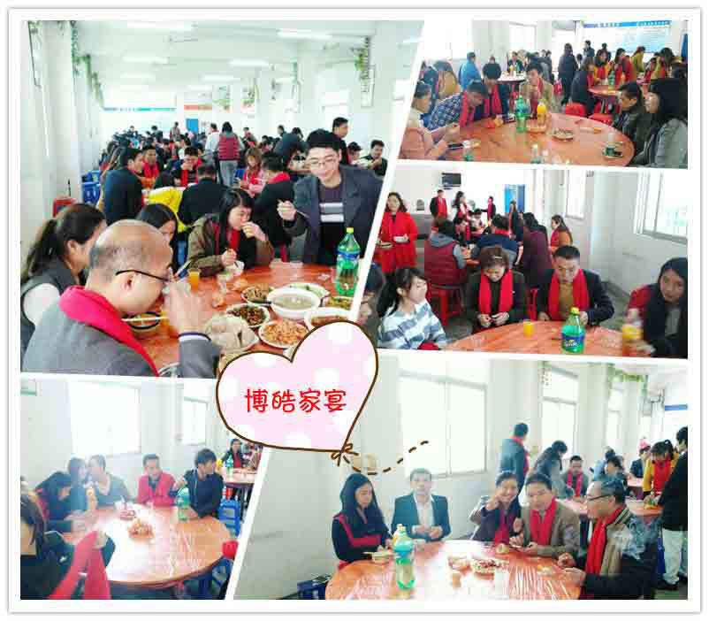 中午12點(diǎn)半,在"博皓大酒店",擺了12桌酒席!博皓的大廚已準(zhǔn)備好了大餐,迎接開完年會(huì)的家人們!這也是博皓電子每年的傳統(tǒng),全體員工跟家人一樣在家里吃個(gè)團(tuán)圓飯!酒桌上,博皓全體家人們開懷暢飲,互相敬酒,互相祝福!相信在新的一年里博皓電子在硅膠定制行業(yè)一定可以再上一個(gè)新臺(tái)階!吳總.盧總.宗總更是紅包送不停,這頓午宴在一片歡聲笑語(yǔ)中結(jié)束了!