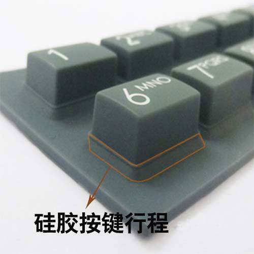 行程是指硅膠按鍵的導電面到PCB之間的距離,這個要靠硅膠按鍵與塑膠外殼的設(shè)計來配合,一般我們做遙控器按鍵的行程通常都做到1.1±0.1mm,這個行程能夠滿足大眾的手感要求,按鍵在按下的過程中有明顯的段落感,手感舒適,這種行程的按鍵高度一般要高出機殼1.7mm左右,即按鍵按下后表面還高出機殼0.5mm左右,這樣就能避免硅膠按鍵卡鍵或者彈不起來的問題。