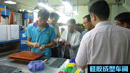 上圖為Cisco領(lǐng)導(dǎo)對(duì)我司生產(chǎn)的透光硅膠按鍵進(jìn)行了解。