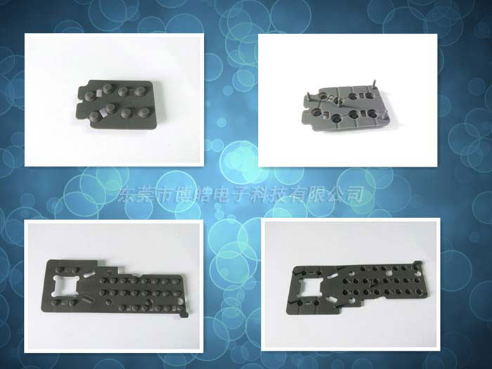 對于硅膠制品廠而言,模壓成型過程中都會有毛邊的存在,它是為常見的一種硅膠廢料,而毛邊的厚度一般為0.3mm,內(nèi)襯硅膠按鍵模壓出來之后需要加工把毛邊切除或撕掉,所以內(nèi)襯硅膠按鍵的薄邊厚度設(shè)計不能超過0.3mm這個數(shù)值。我們博皓一般會建議客戶做成0.4mm以上的厚度,這樣既能保證拆邊的良品率,也有利于內(nèi)襯按鍵的物理性能,太薄是容易破損的。 在博皓,內(nèi)襯硅膠按鍵做了非常多,厚度也各不相同,大多數(shù)厚度都在0.8mm-1.0mm之間,顏色采用灰色,硬度在55±3°。