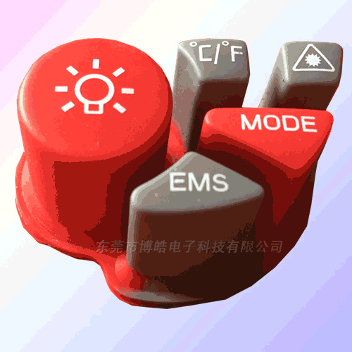 以下這款硅膠按鍵,就是用于通用機械的,它用兩種硅膠顏色混合成型,便于區(qū)分各按鍵功能,硅膠顏色可以根據(jù)需求調(diào)配顏色,按鍵底部的小圓圈是導電黑粒。