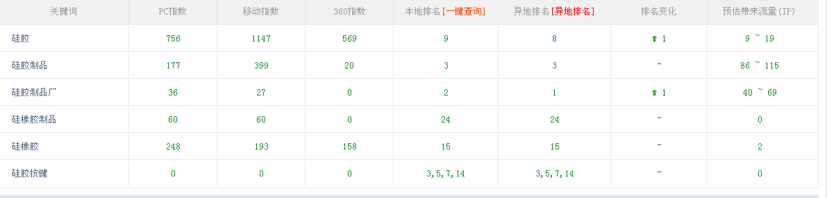 但如果只是優(yōu)化“硅膠按鍵”對博皓網(wǎng)站是不夠的,網(wǎng)站排名有百度權(quán)重高低來進行搜索引擎優(yōu)化關(guān)鍵因素,所以我們博皓還選擇“硅膠、硅膠制品、硅膠制品廠、硅橡膠制品、硅橡膠”,這些都是有百度指數(shù)的,優(yōu)化難度很高,不是一朝一夕可以優(yōu)化上的,靠的是持之以恒的堅持執(zhí)行去完成。