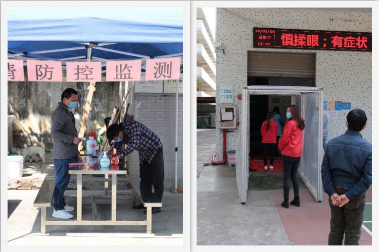 進(jìn)車間前,檢測體溫、酒精消毒