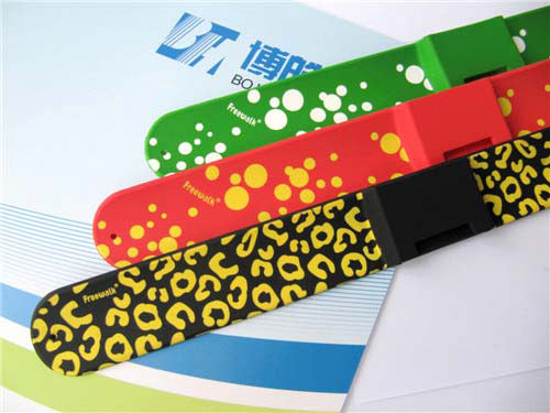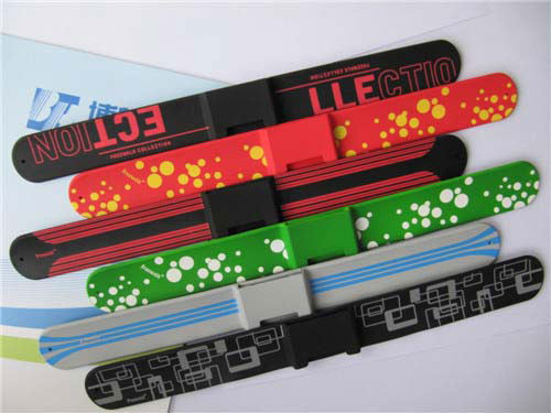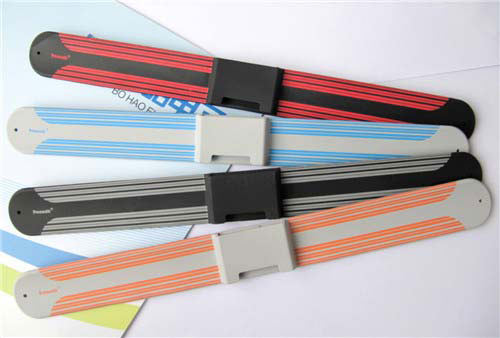 硅膠拍拍帶是近市場比較流行的一款運動型產品的附屬品,產品主要是運用在電子手表,脈搏測試儀或者純屬裝飾品。這種產品因為顏色比較多,經過的各段的工藝流程比較復雜。而博皓電子在經過不到4年的發(fā)展已經擁有3個工廠的生產規(guī)模,目前擁有成型機器42臺,生產需要的相應絲印設備噴涂設備一應俱全,并且每個工廠能維持在150人的生產力,所有的工藝均是在本廠內部完成。