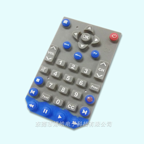 - 產(chǎn)品簡介:該產(chǎn)品適用于電視遙控器,采用深灰色硅膠原材料,再加搭配藍色使遙控器看起來更加多姿多彩,紅色按鍵是開關電源鍵,在遙控器底部附有導電油墨,可起到導電效果。