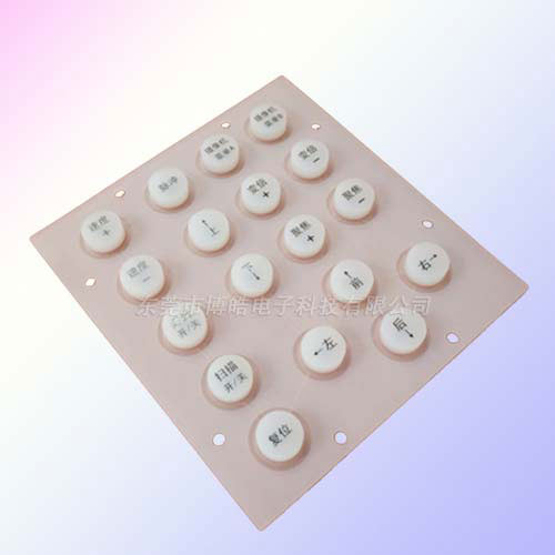 - 產(chǎn)品簡介:本款硅膠按鍵是用于攝影移動升降車上控制器的硅膠按鍵。博皓電子承接來圖來樣定制。