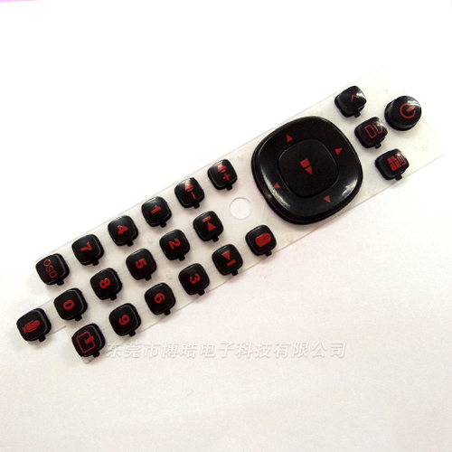 - 產(chǎn)品簡(jiǎn)介:本款p+r按鍵是一款遙控器上的p+r按鍵,紅色油墨絲印,透明色底硅膠按鍵。博皓電子專注硅膠按鍵開(kāi)模定制15年!