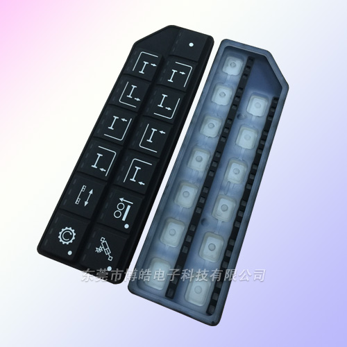 - 產(chǎn)品簡(jiǎn)介:這是一款二次成型的硅膠控制器面板按鍵,采用噴涂鐳雕工藝,個(gè)別字符也是絲印工藝,后面以噴保護(hù)油而收尾。